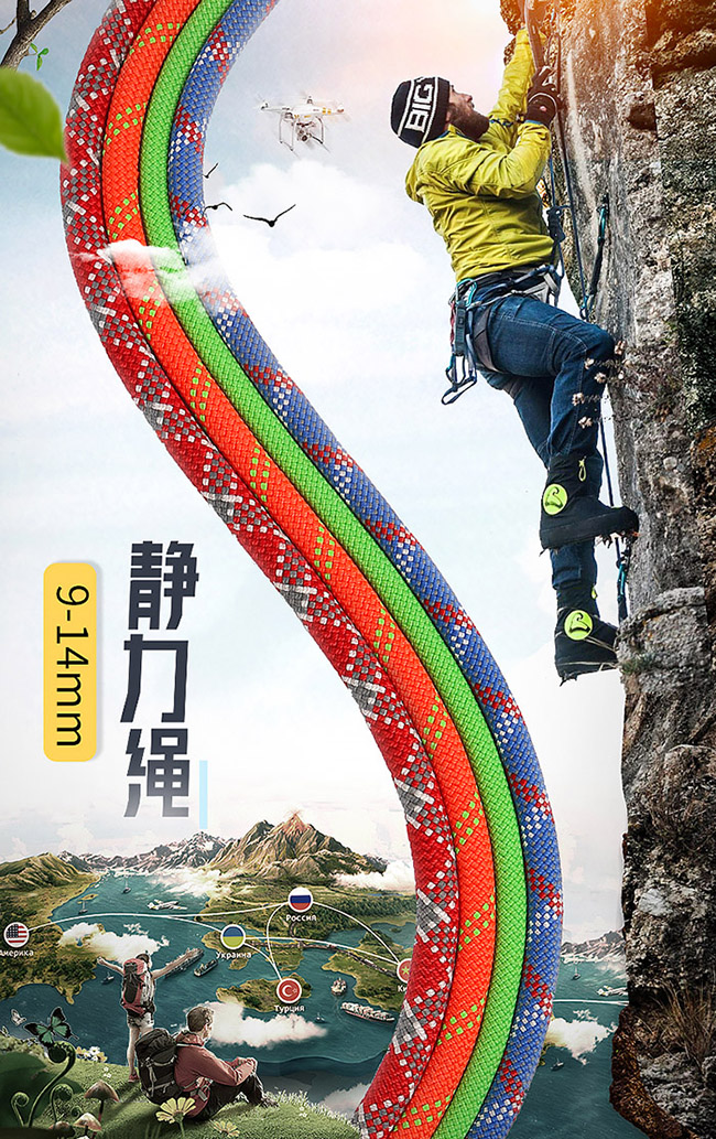 攀巖繩索采用高強(qiáng)杜邦絲材質(zhì),高強(qiáng)拉力,不易老化,張力控制精準(zhǔn),長距離使用拉力損耗小。